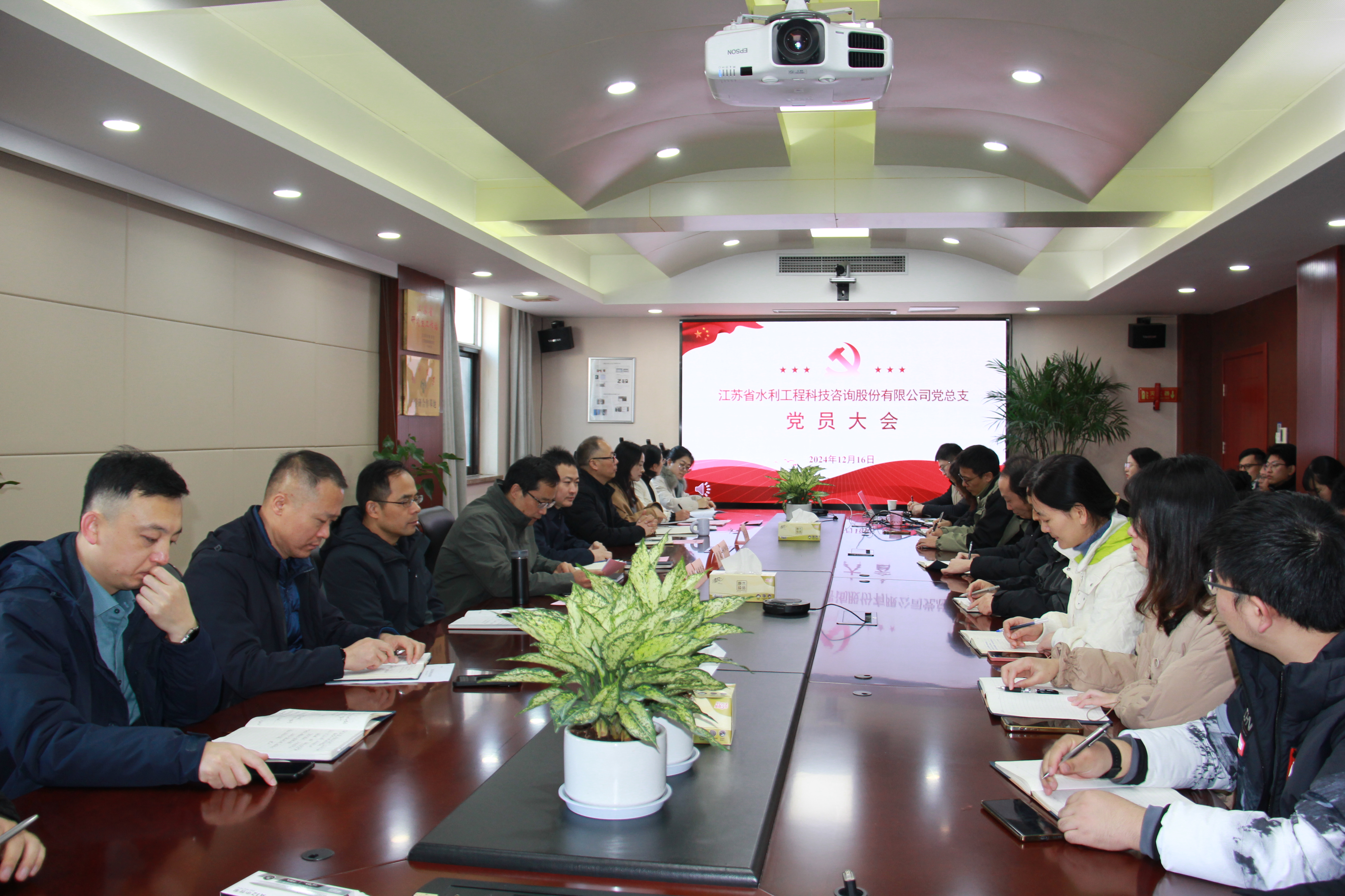 2024年12月16日,中共江蘇省水利工程科技咨詢股份有限公司總支部委員會第一次黨員大會順利召開,廳機關黨委紀委副書記周敏出席會議,公司董事長兼總經理顏紅勤主持會議。