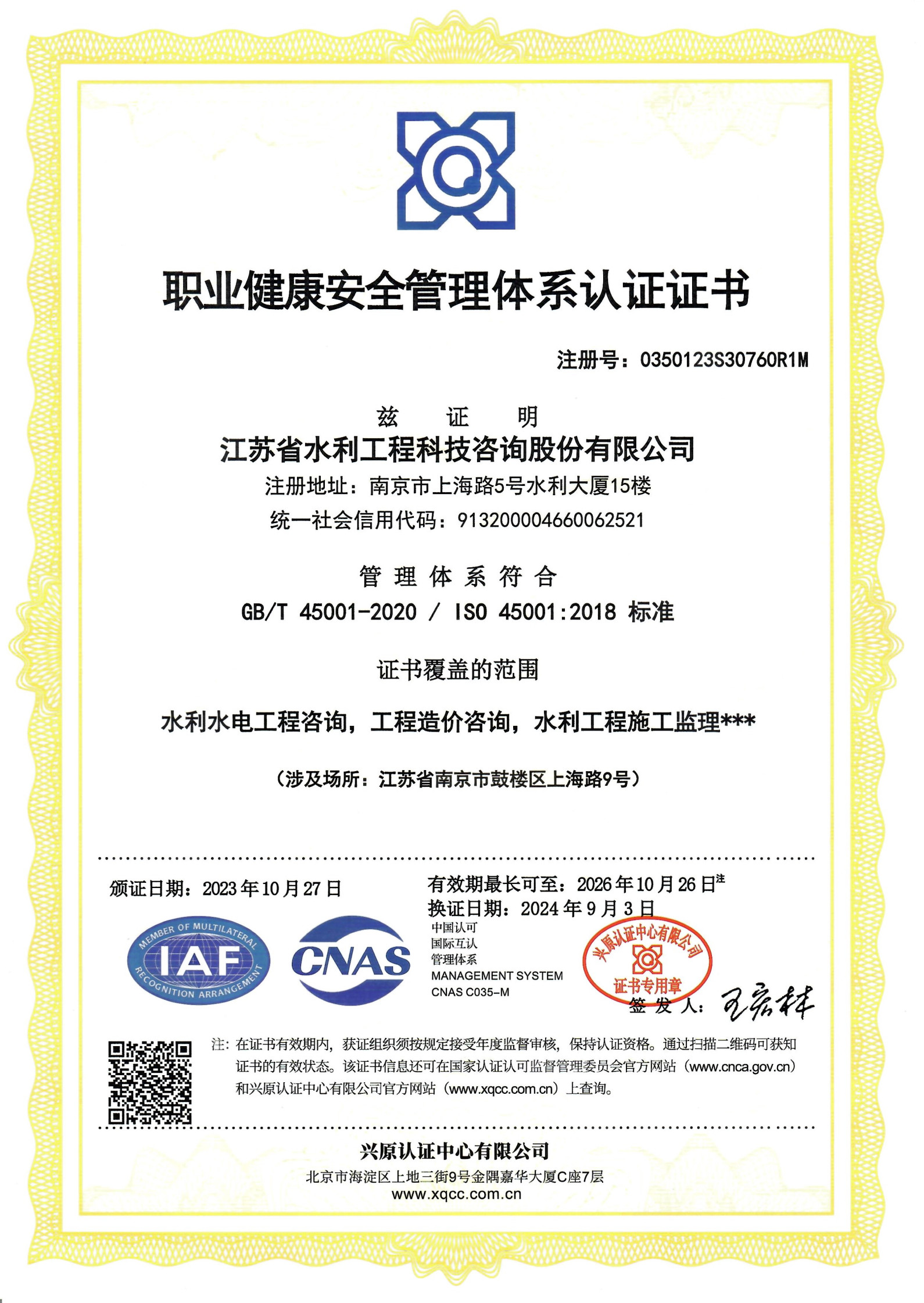 ISO職業(yè)健康管理體系認(rèn)證證書